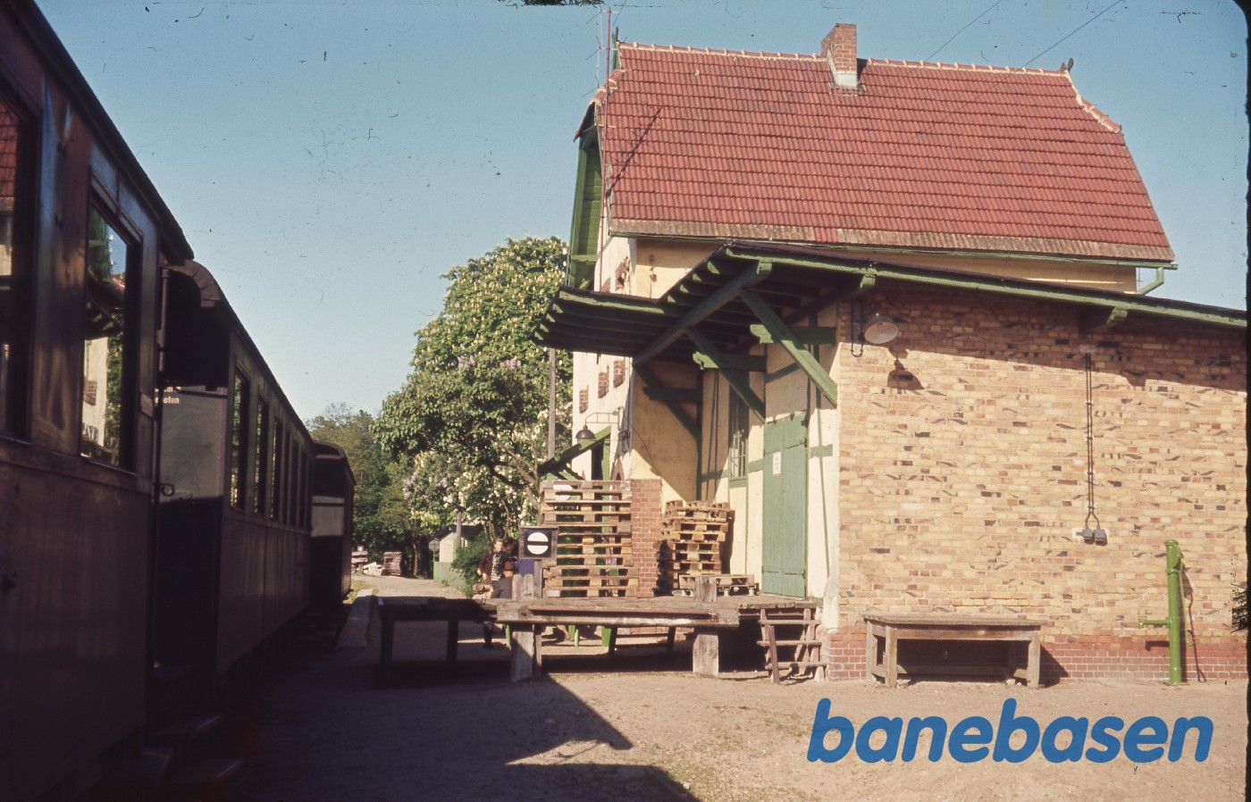 Motiv:Persontoget holder på landstation i bymæssig bebyggelse