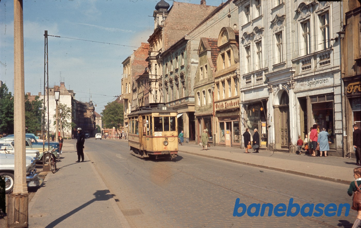 Motiv:Enkeltkørende sporvogn i gadebilledet