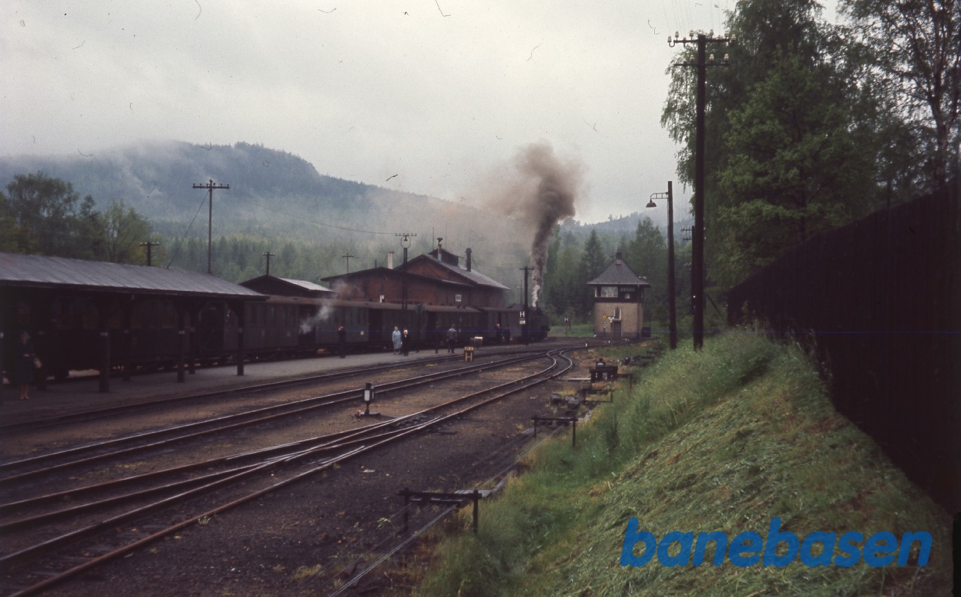 Motiv:Foto af hele stationen. Persontoget holder klar til afgang