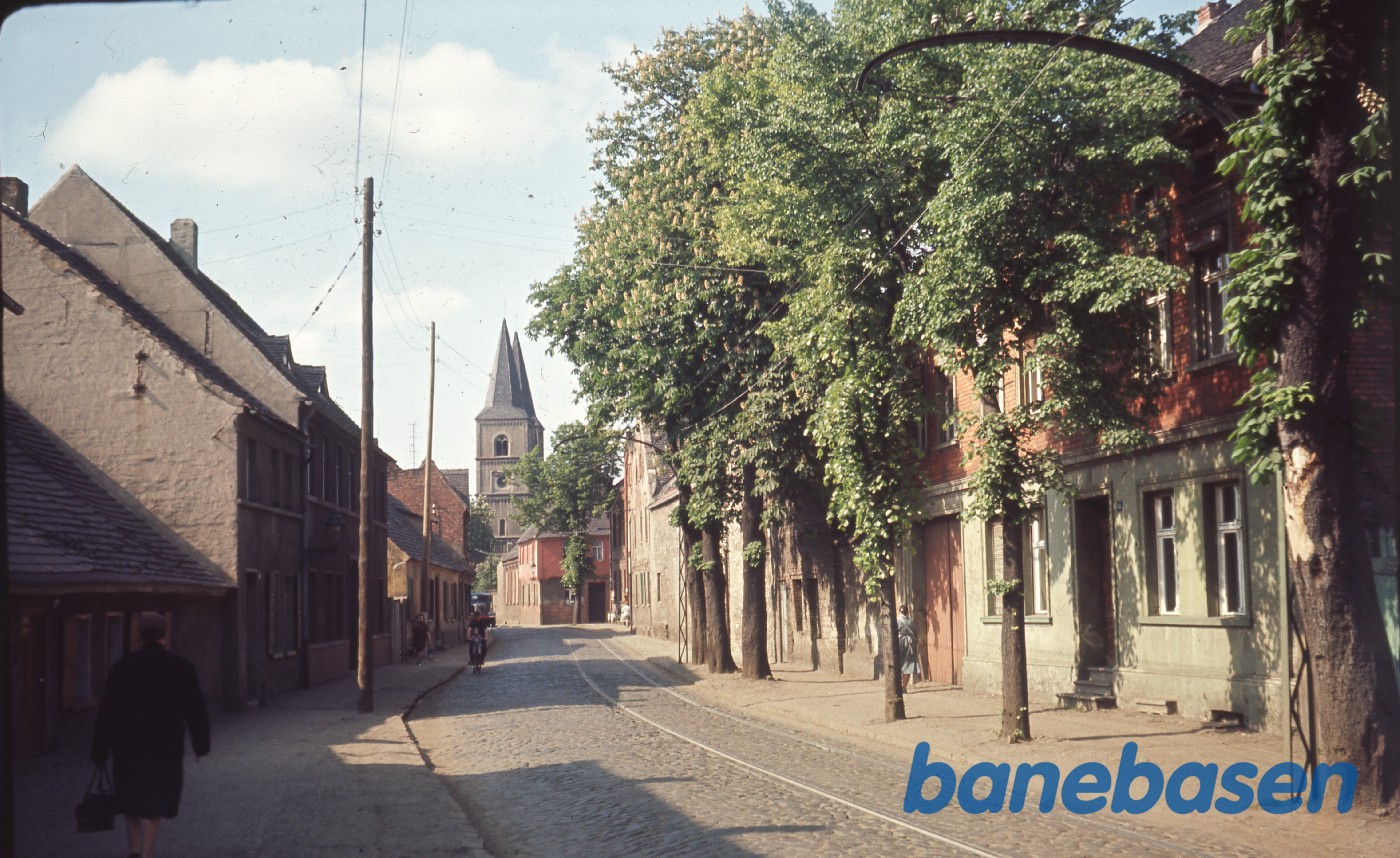 Gadebillede med sporvejsskinner