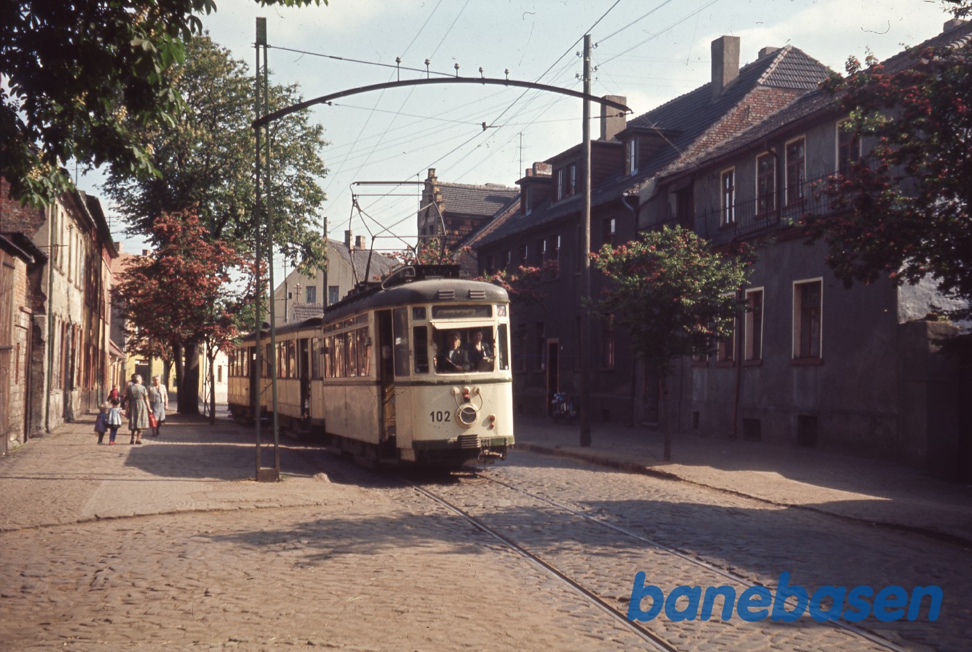Motiv:Ældre sporvogne i bybilledet
