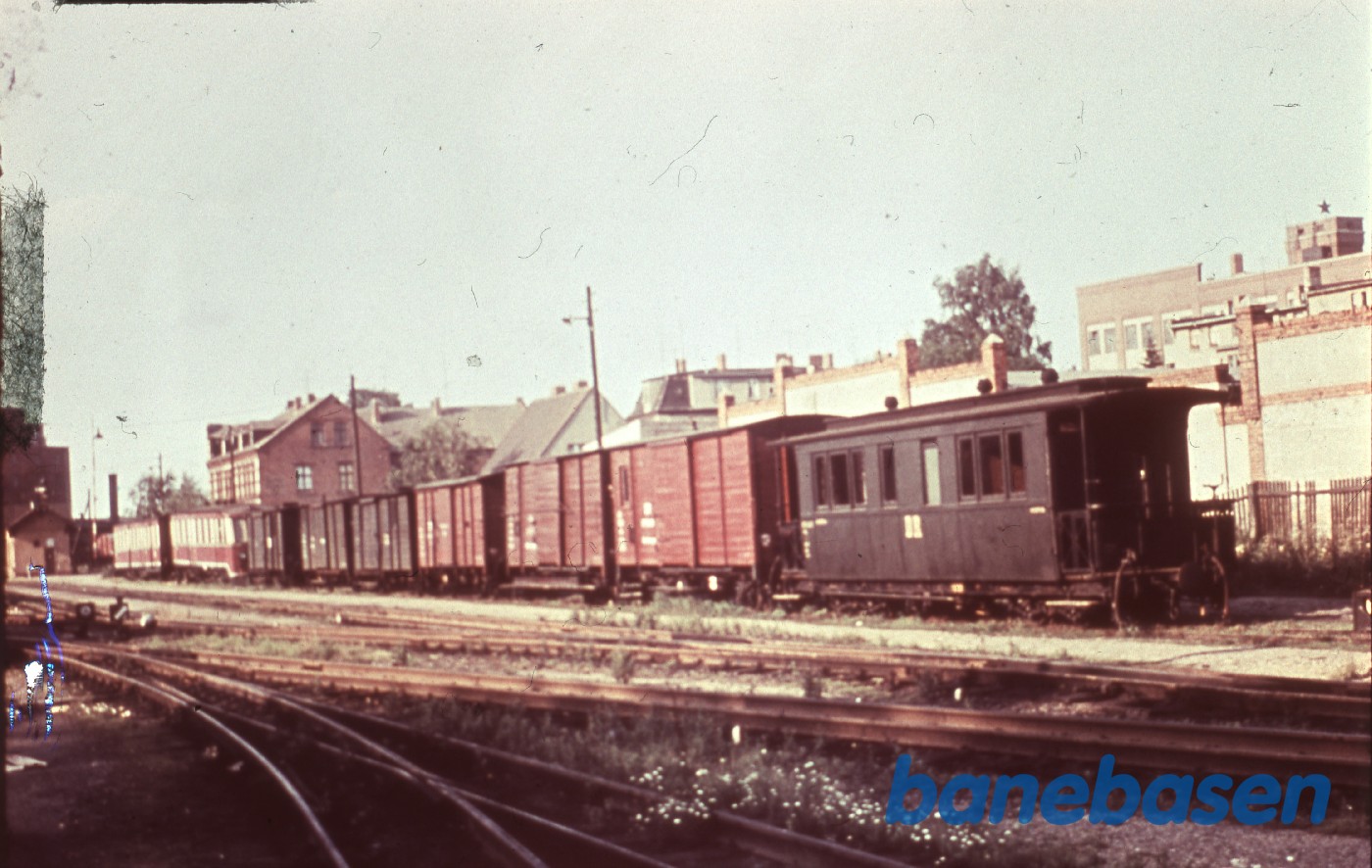 Motiv:Diverse person-, gods- og motorvognsmateriel på et sidespor