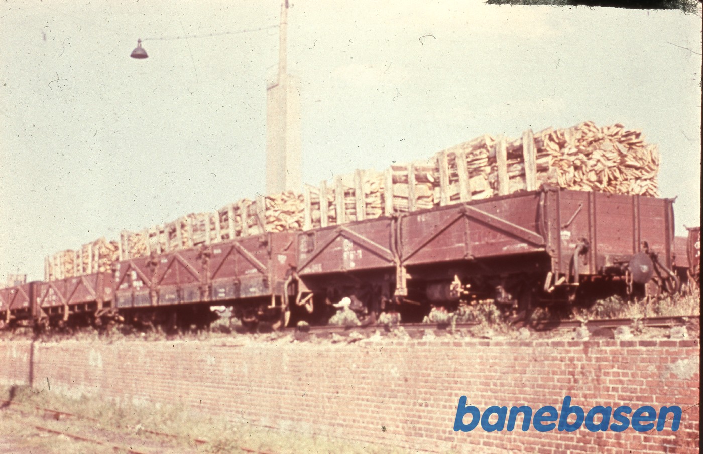 Motiv:4 godsvogne med træ holder på en rampe