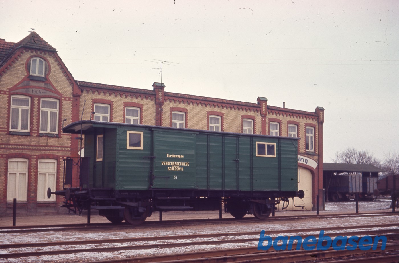 Motiv:Grøn specialvogn på stationen
