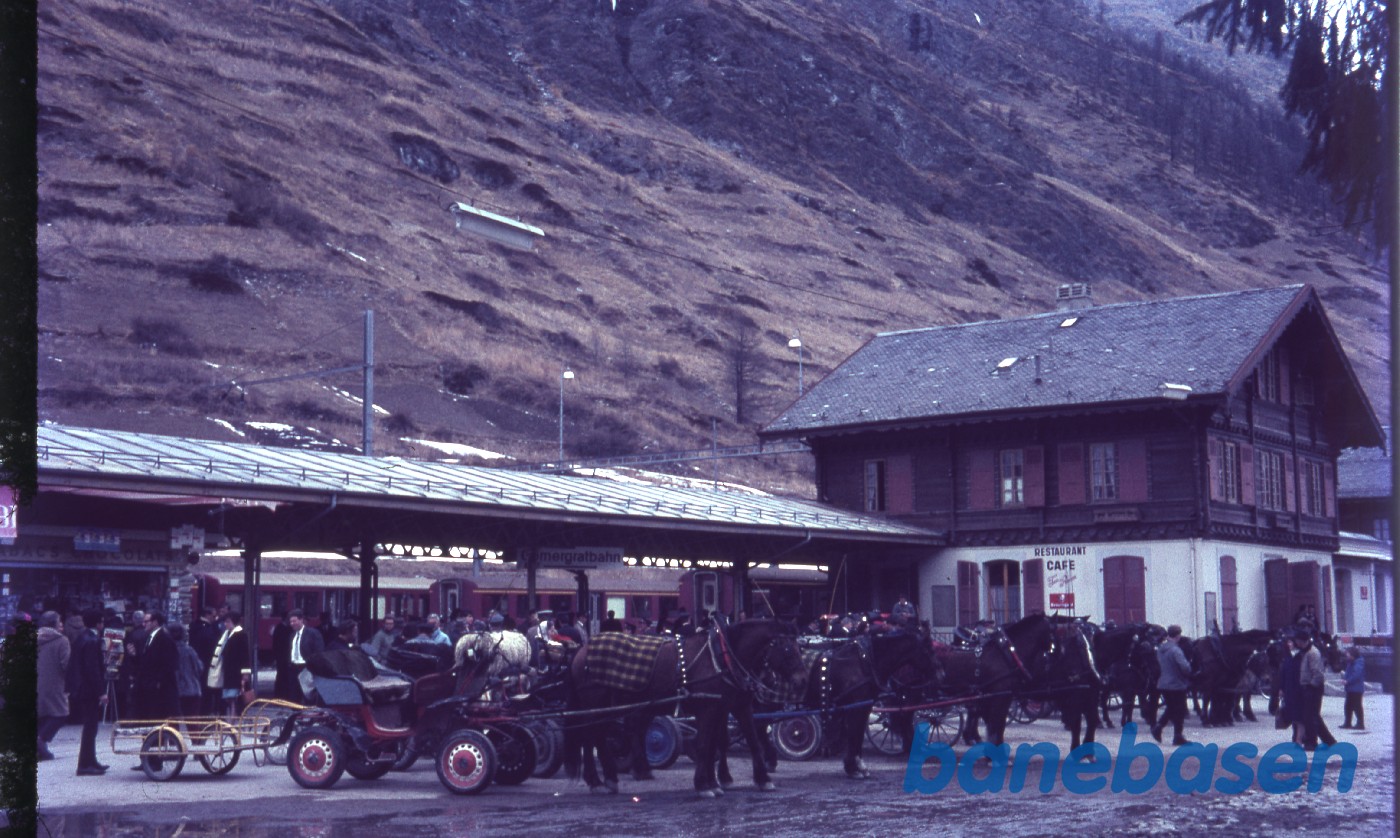 Motiv:Hestevogne venter på de rejsende ved stationen