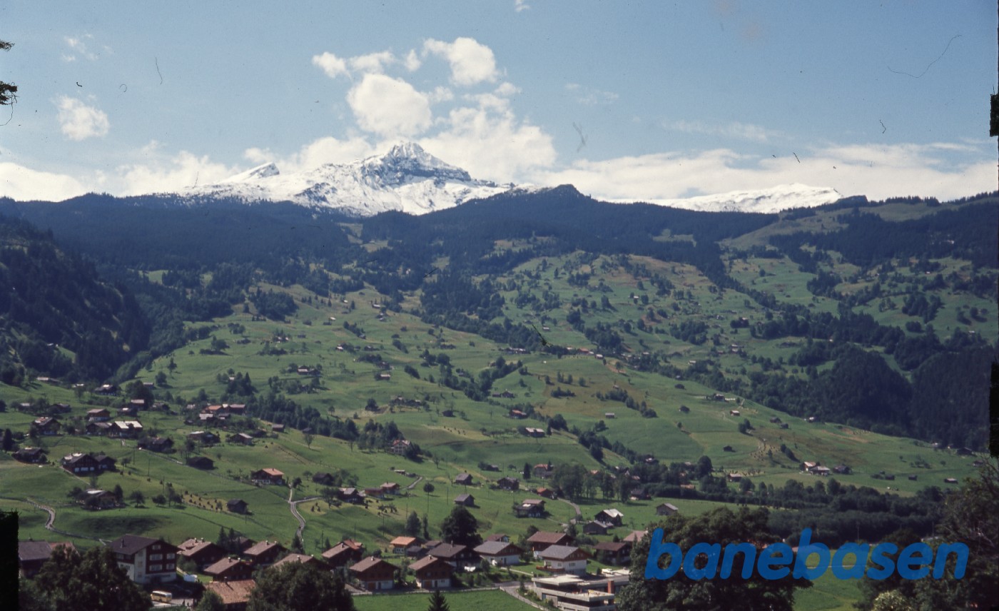Motiv:Vue af landsbyen med bjergene i baggrunden