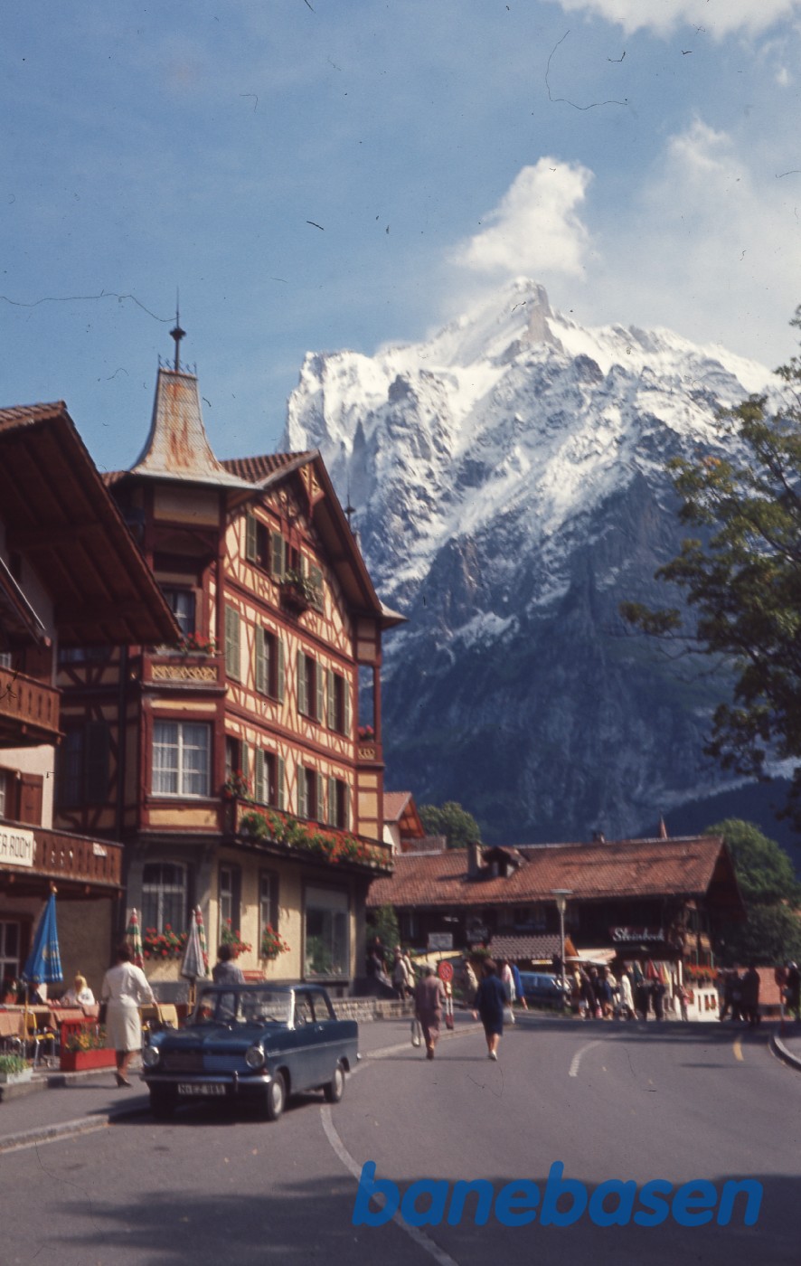 Motiv:Vue af landsbyen med bjergene i baggrunden
