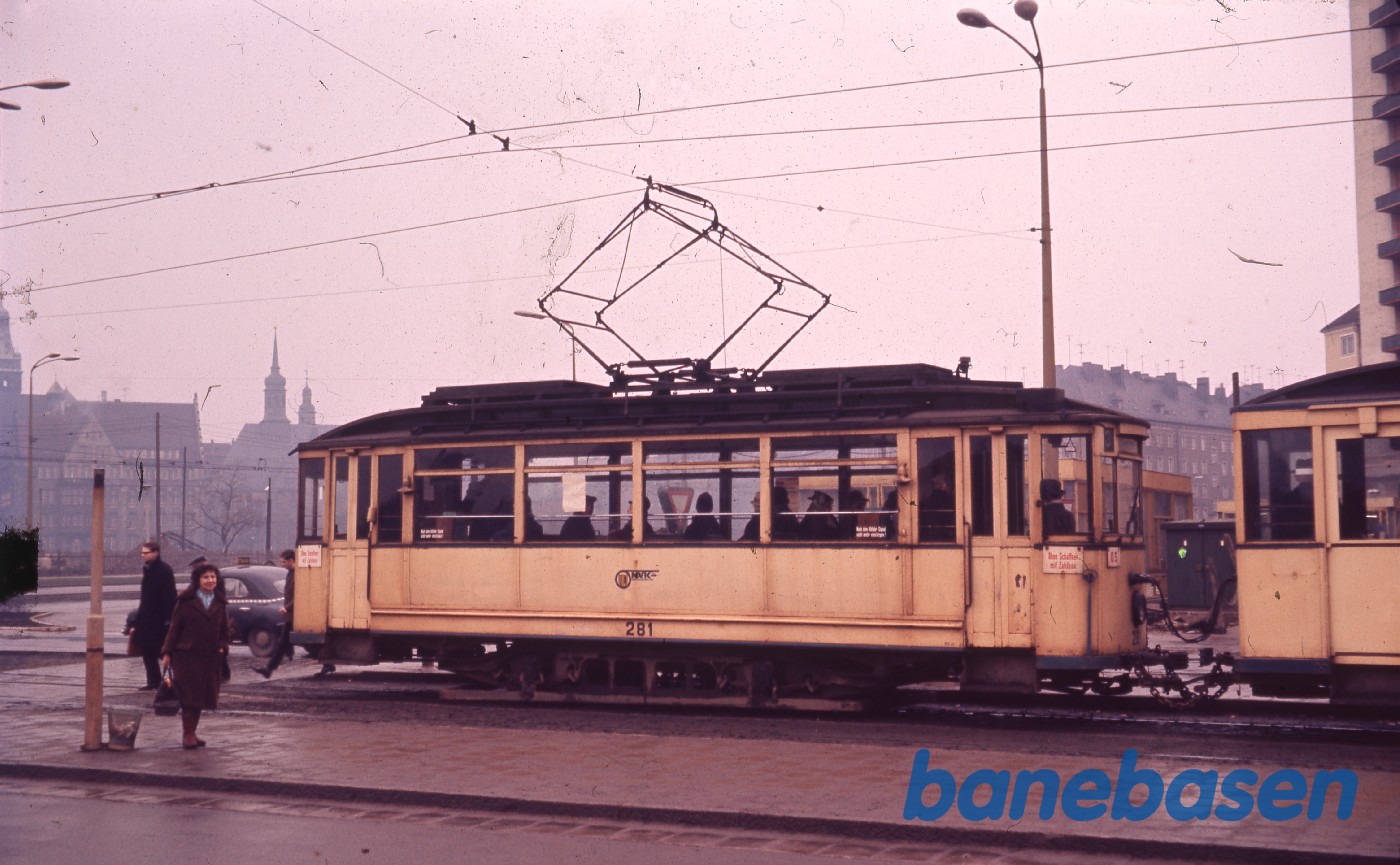 Ældre sporvogn i stort kryds