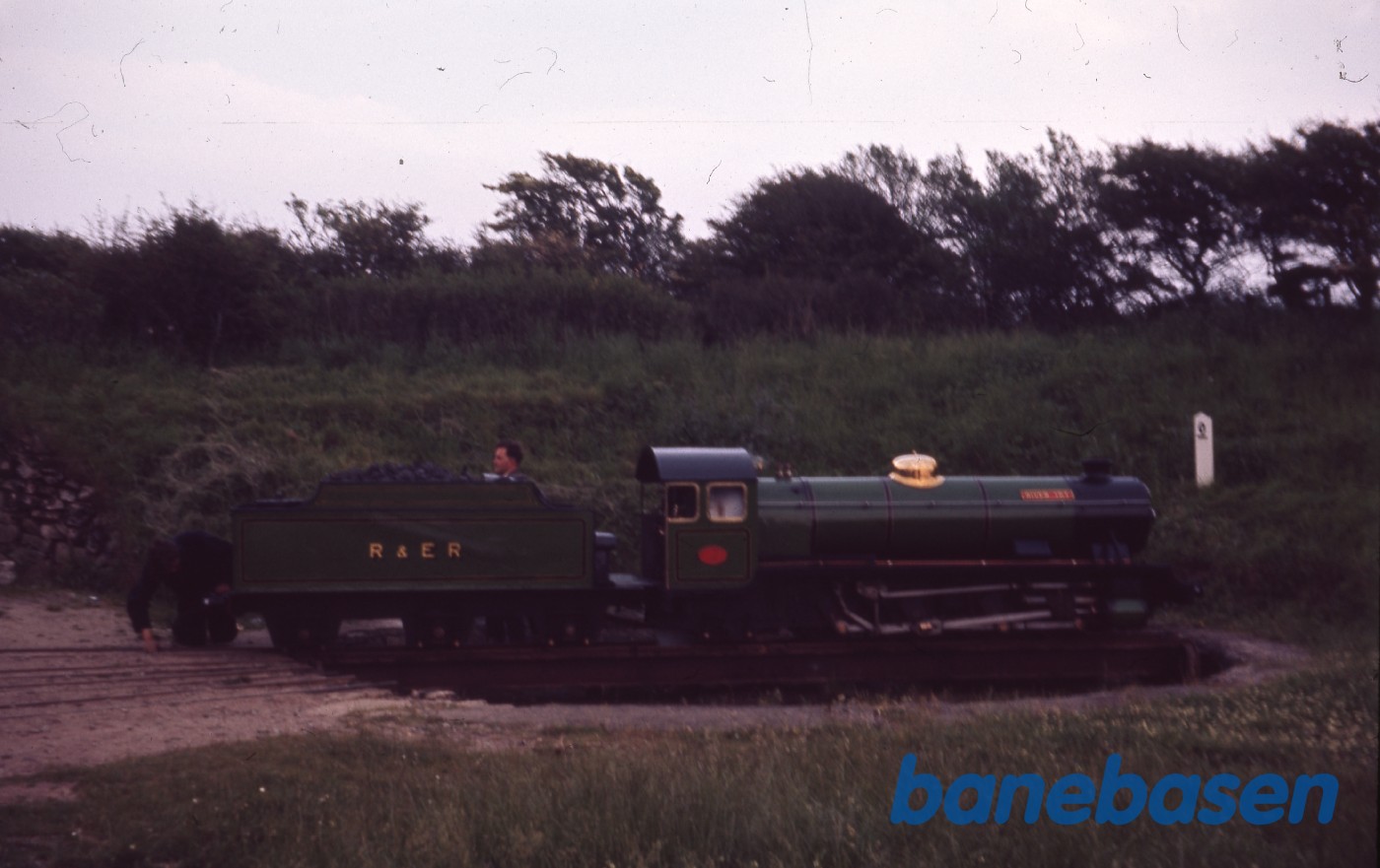 Motiv:Damplokomotivet holder på drejeskiven