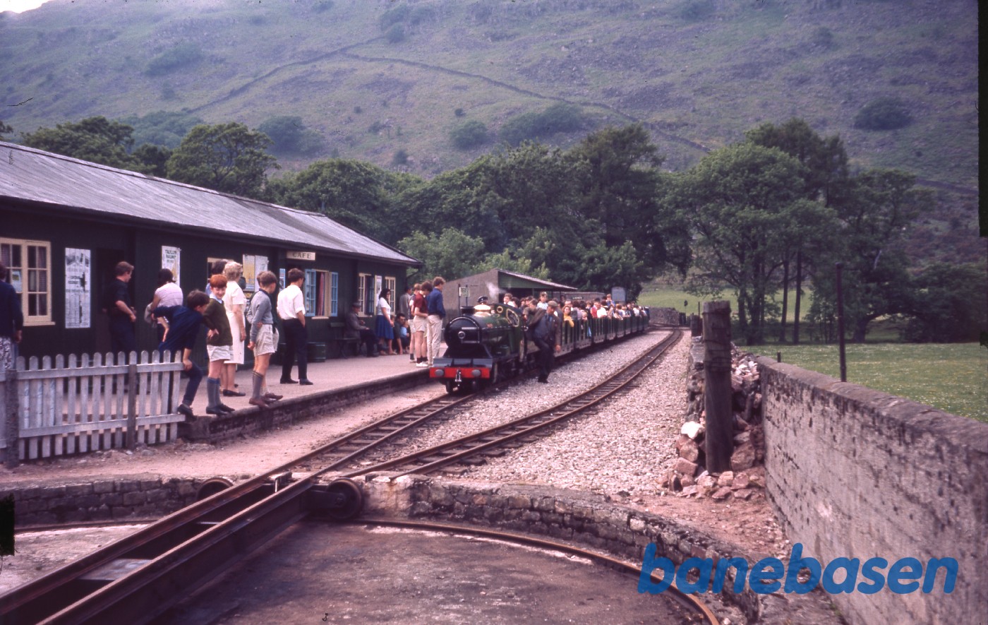 Et propfyldt damptog med glade mennesker er netop ankommet til endestationen