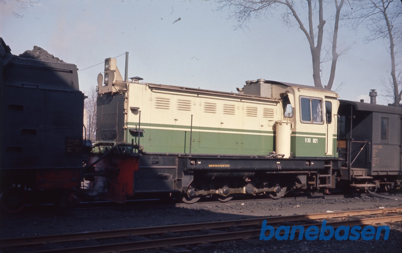 Motiv:Diesellokomotiv koblet efter damplokomotivet
