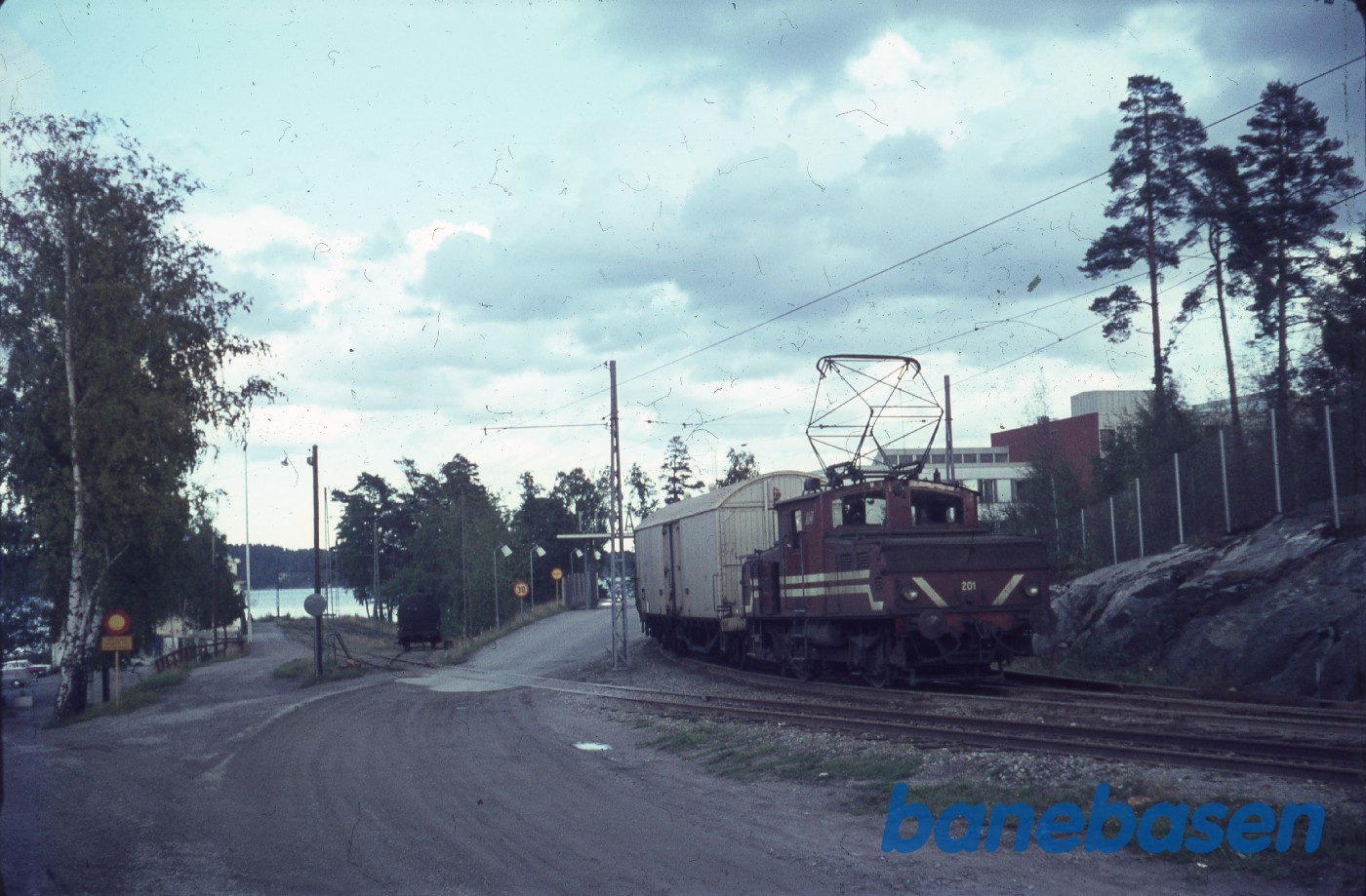Motiv:El-lokomotiv trækker godsvogne