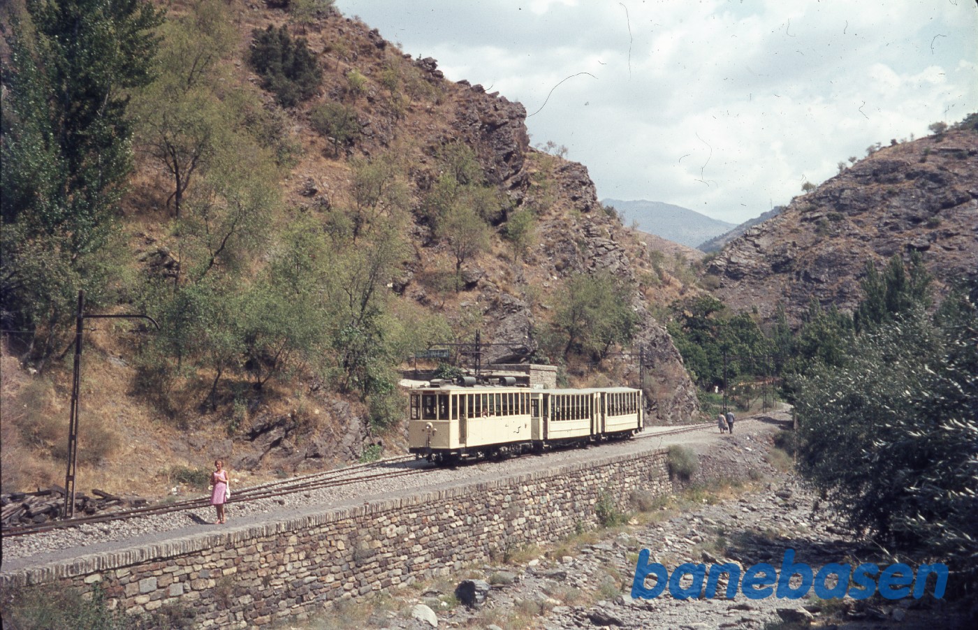 Motiv:Sporvogn ved krydsningsstation oppe i bjergene