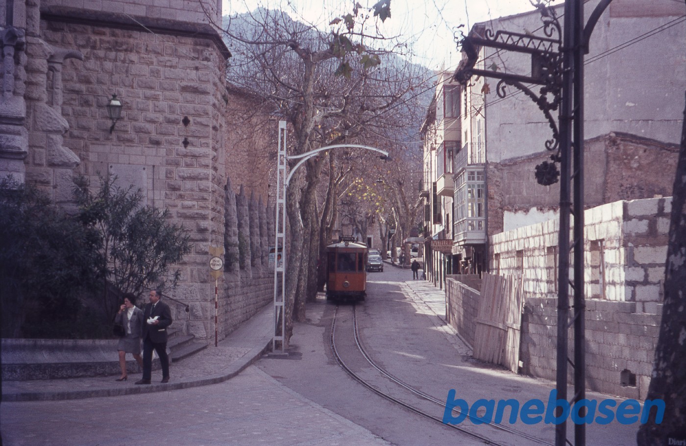 Motiv:Sporvognstoget kører gennem de smalle gader