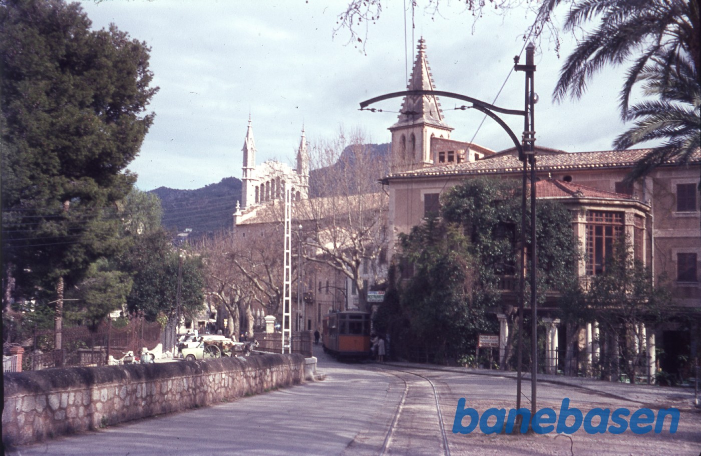Motiv:Sporvognstoget kører gennem de smalle gader