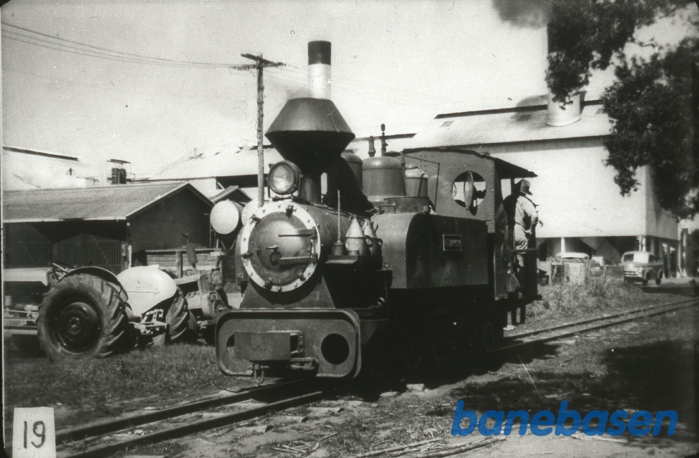 Motiv:Damplokomotivet nærmer sig fabriksområdet