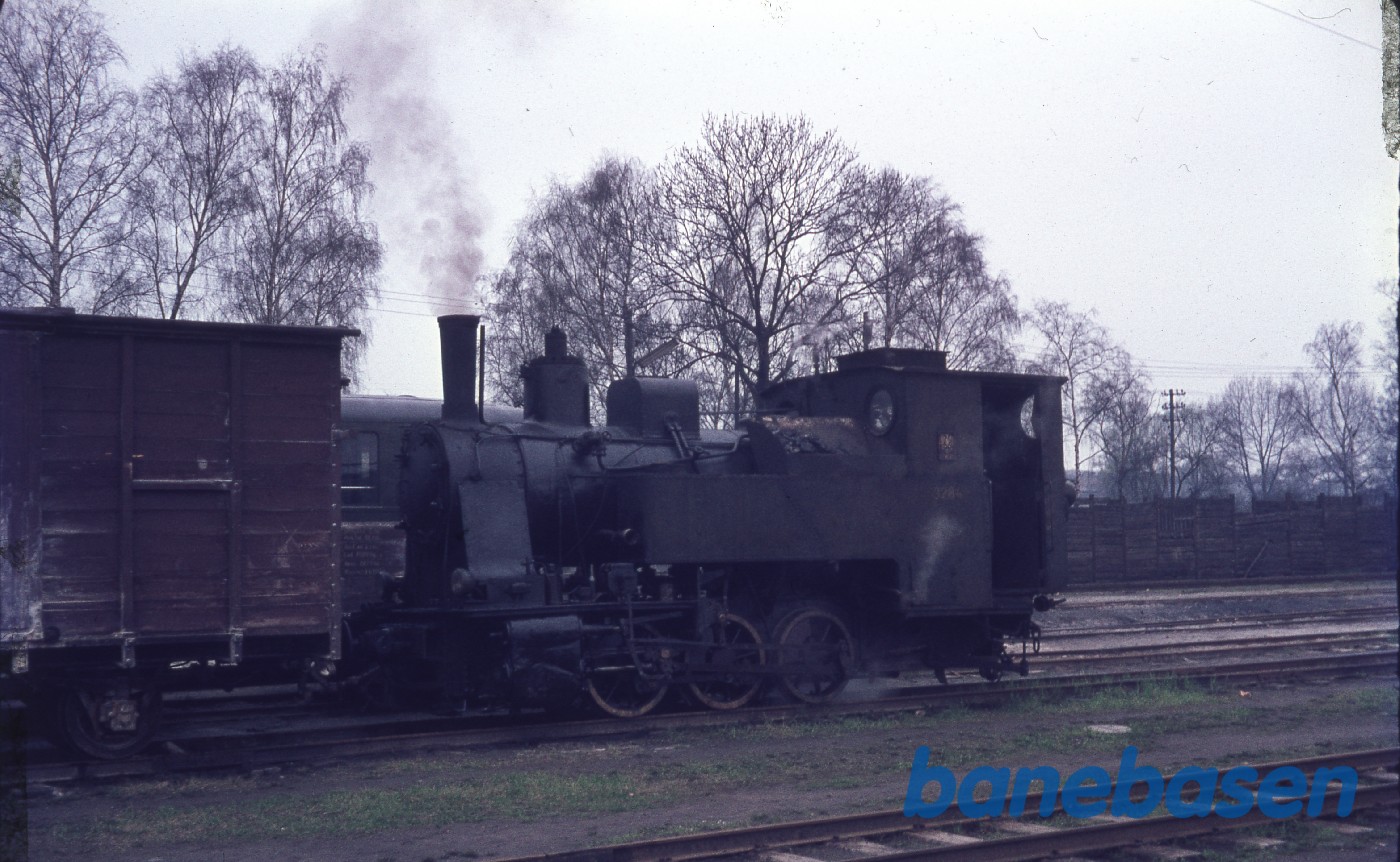 Motiv:Damplokomotiv med godsvogn på stationen