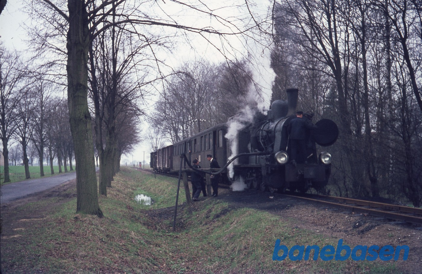 På strækningen mellem Stargard og Stara Dabrowa. Der fyldes vand på lokomotivet
