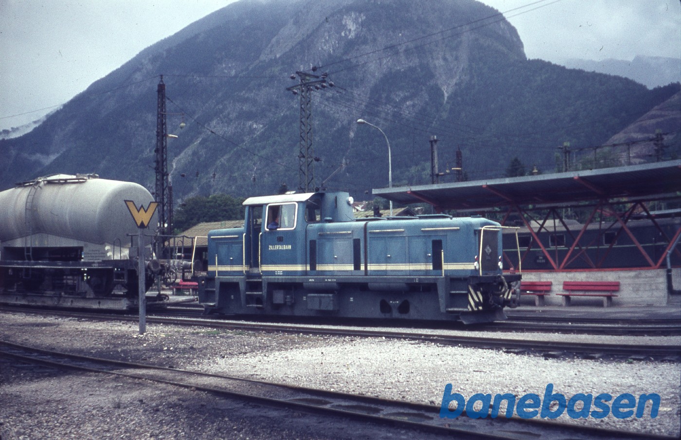 Motiv:Et motorlokomotiv med overførselsvogne på stationen