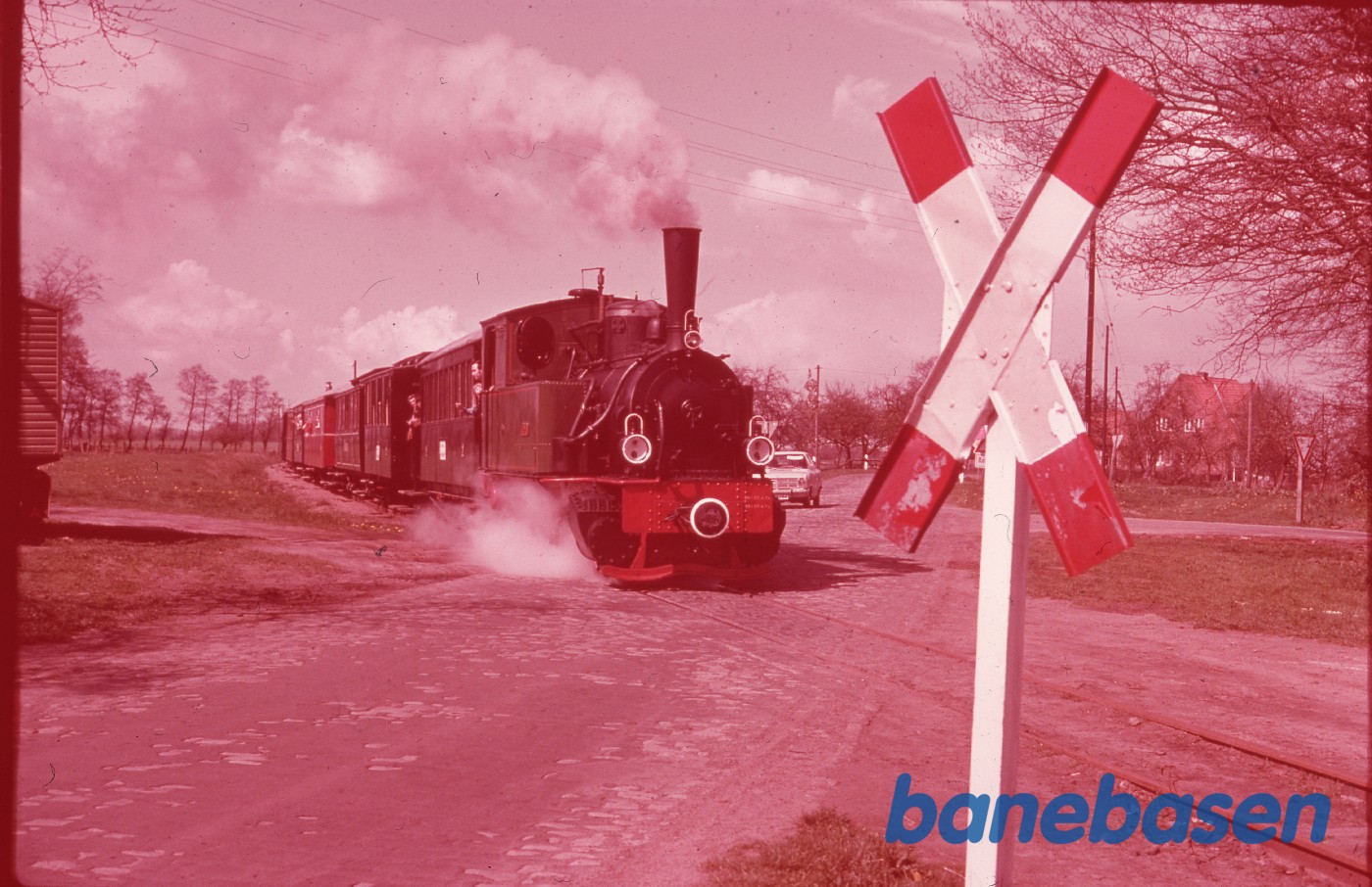 Motiv:Damptoget krydser en vej