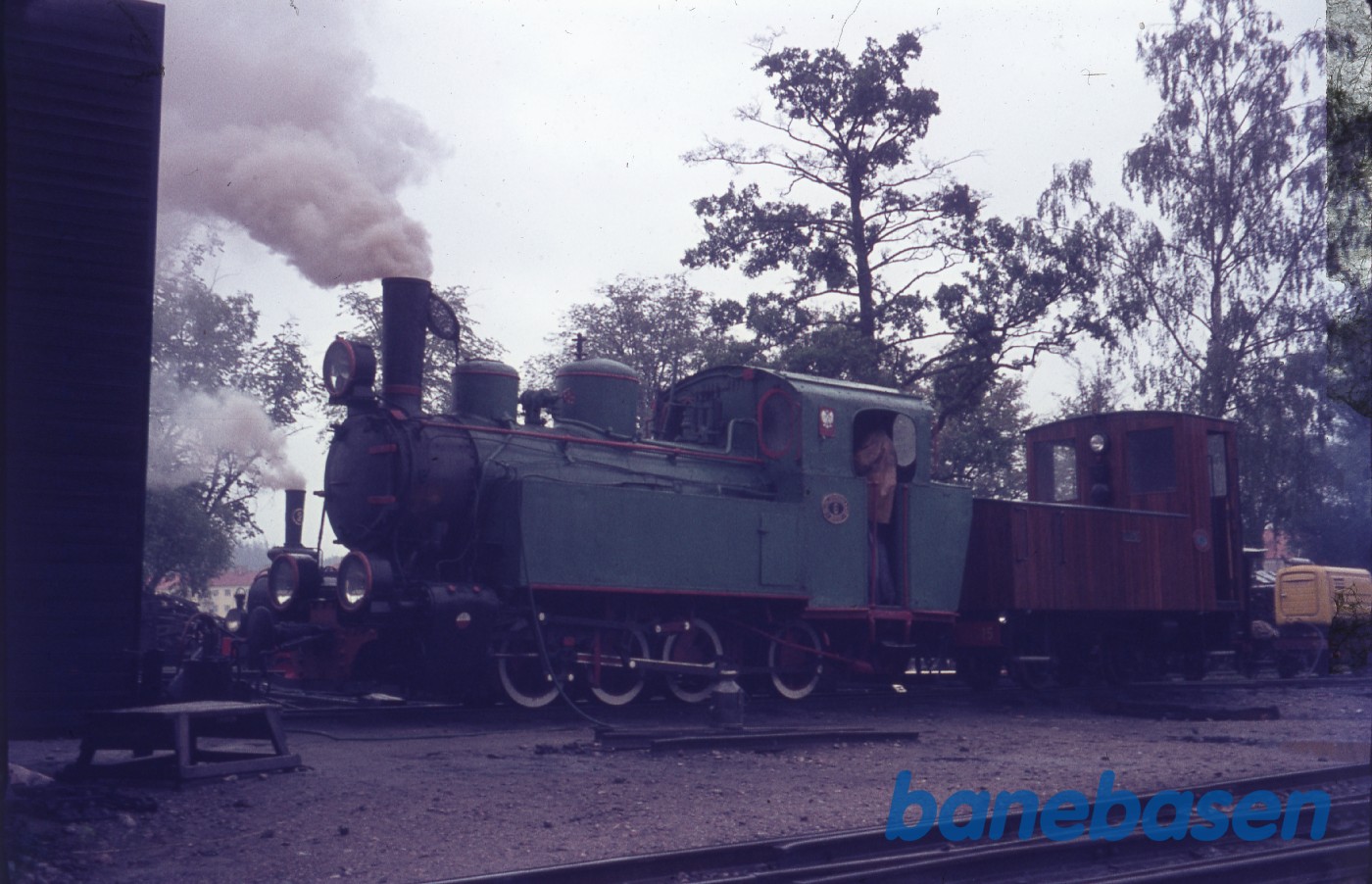 Damplokomotiv udenfor remisen