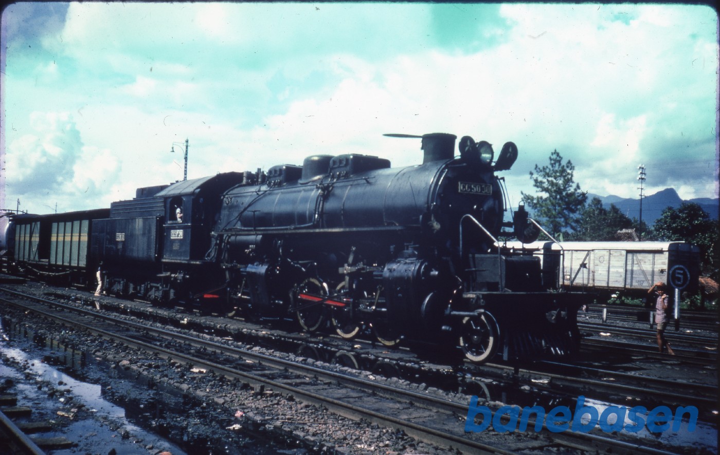 Damplokomotiv med godstog