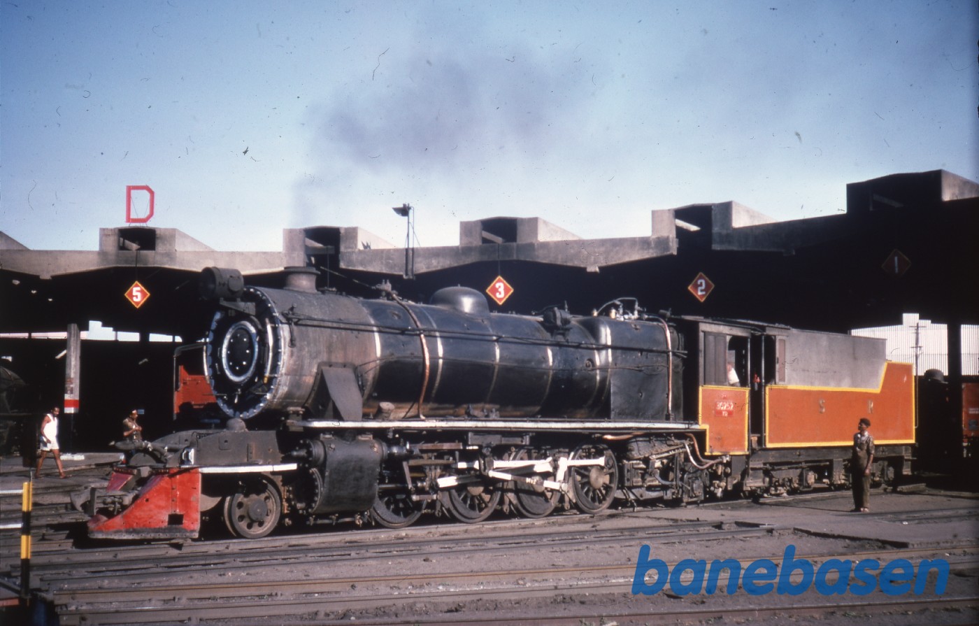 Motiv:Et damplokomotiv ved remisen