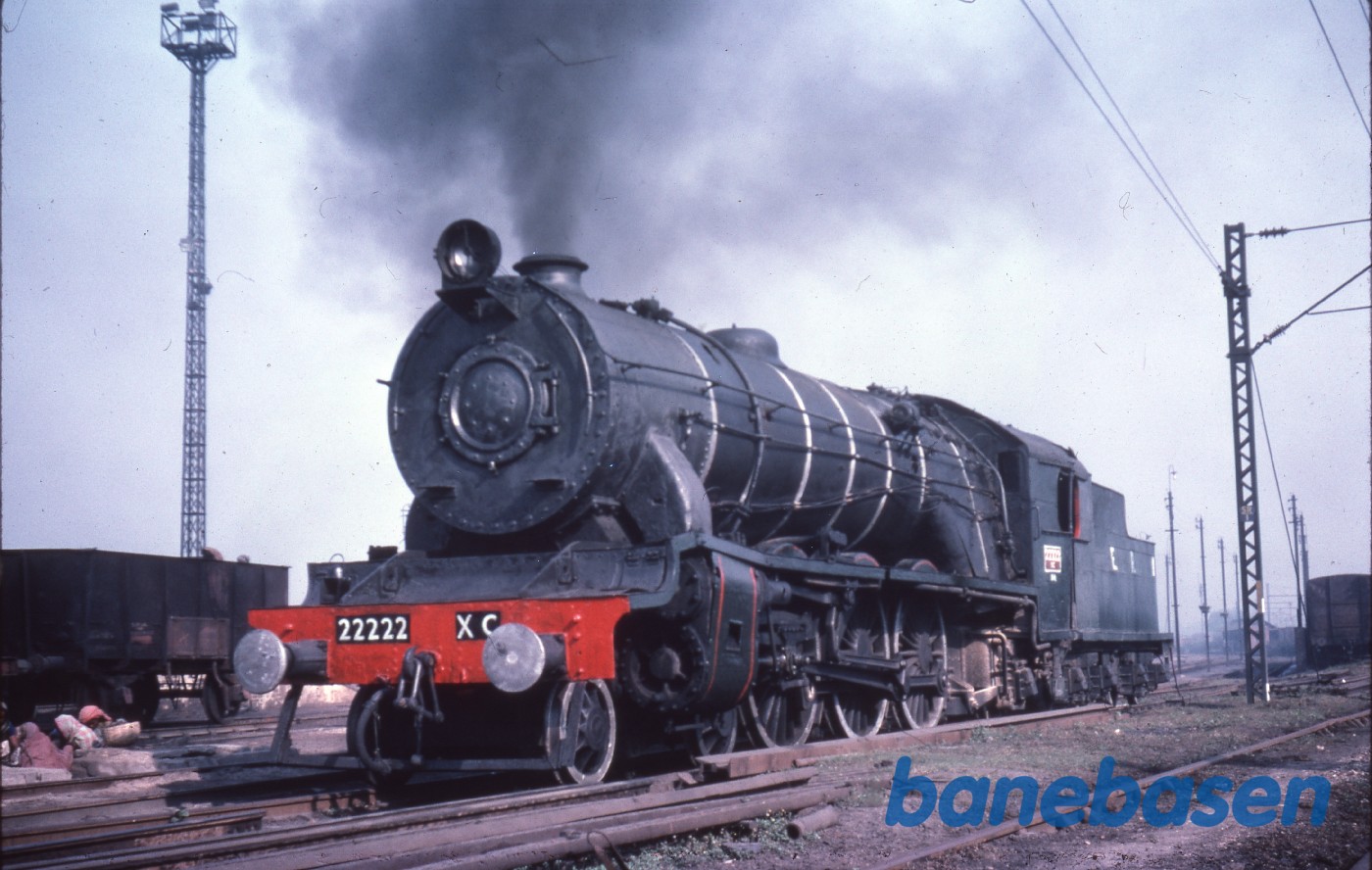Motiv:Et stort damplokomotiv rangerer på en station