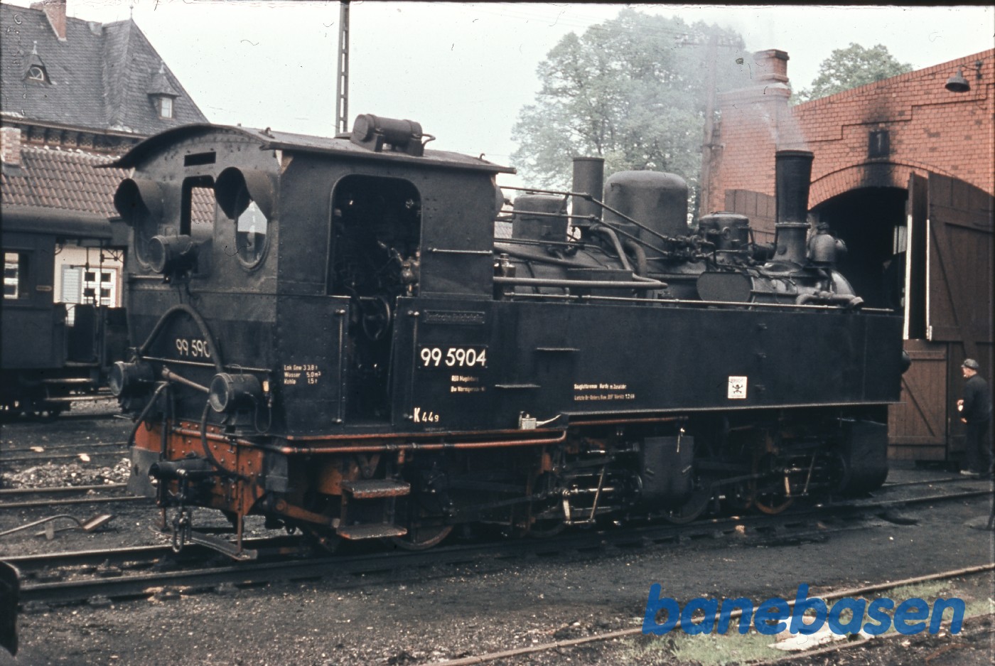 Damplokomotiv udenfor remisen