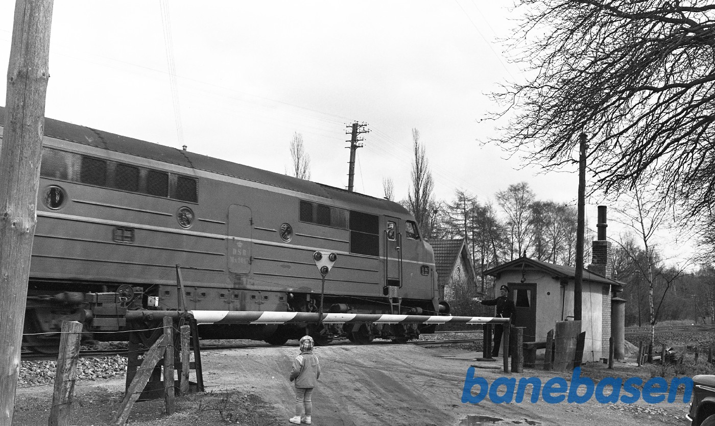 Motiv:DSB mand ved overkørsel med trådtræk på Kystbanen