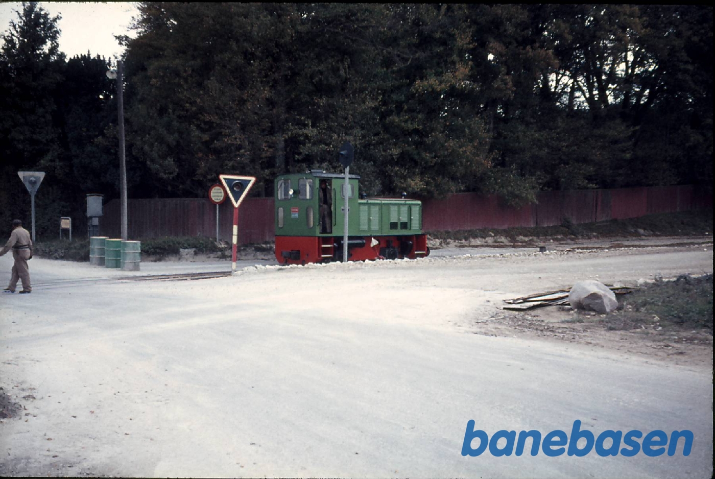 | Motiv: | Smalspor. Faxe kalk . Diesellokomotiv på vejned i kalkgruben |