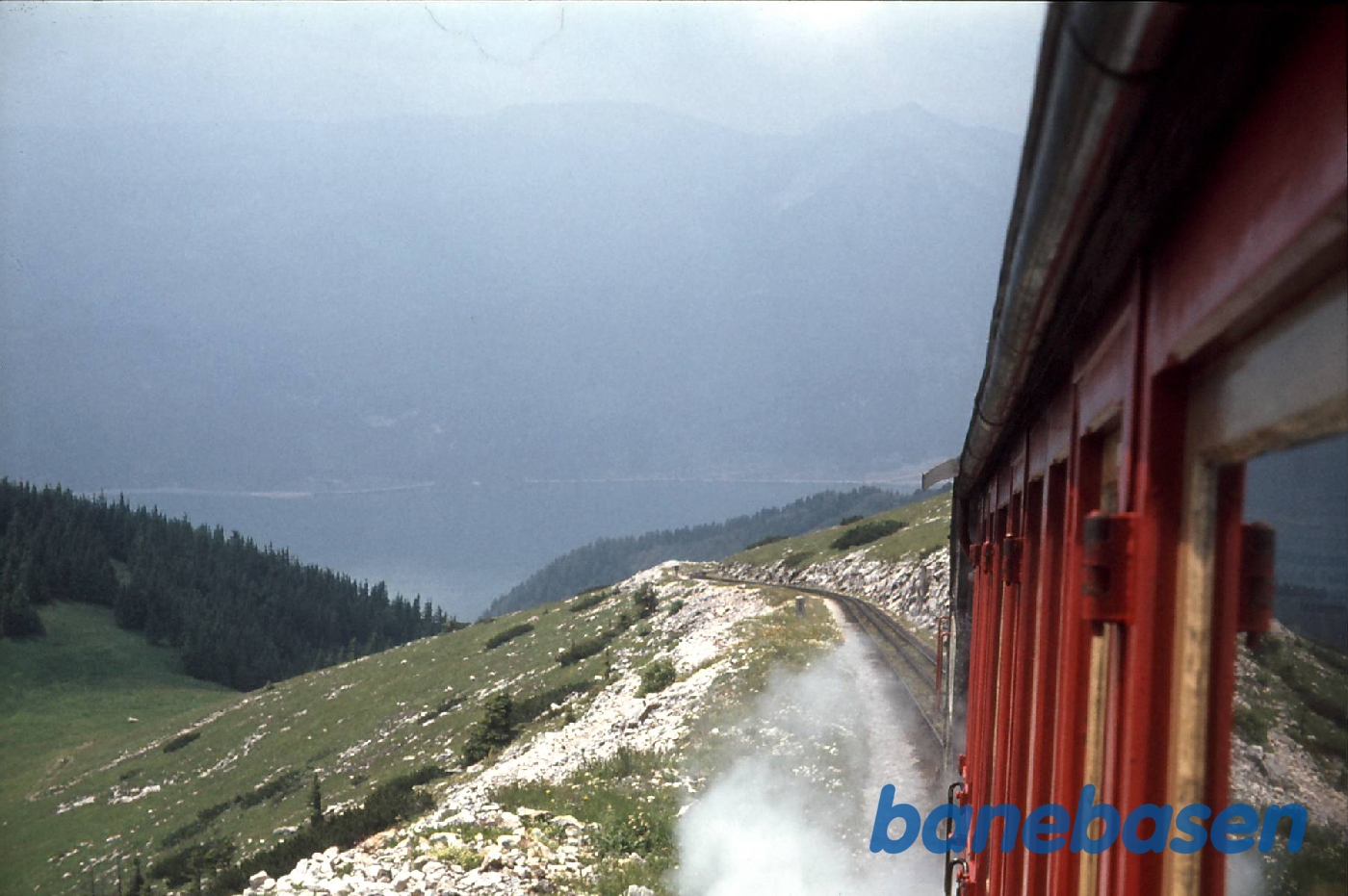 Østrig - Smalsporsbaner. Tog på vej op mellem Schafbergalpe og Schafbergspitze