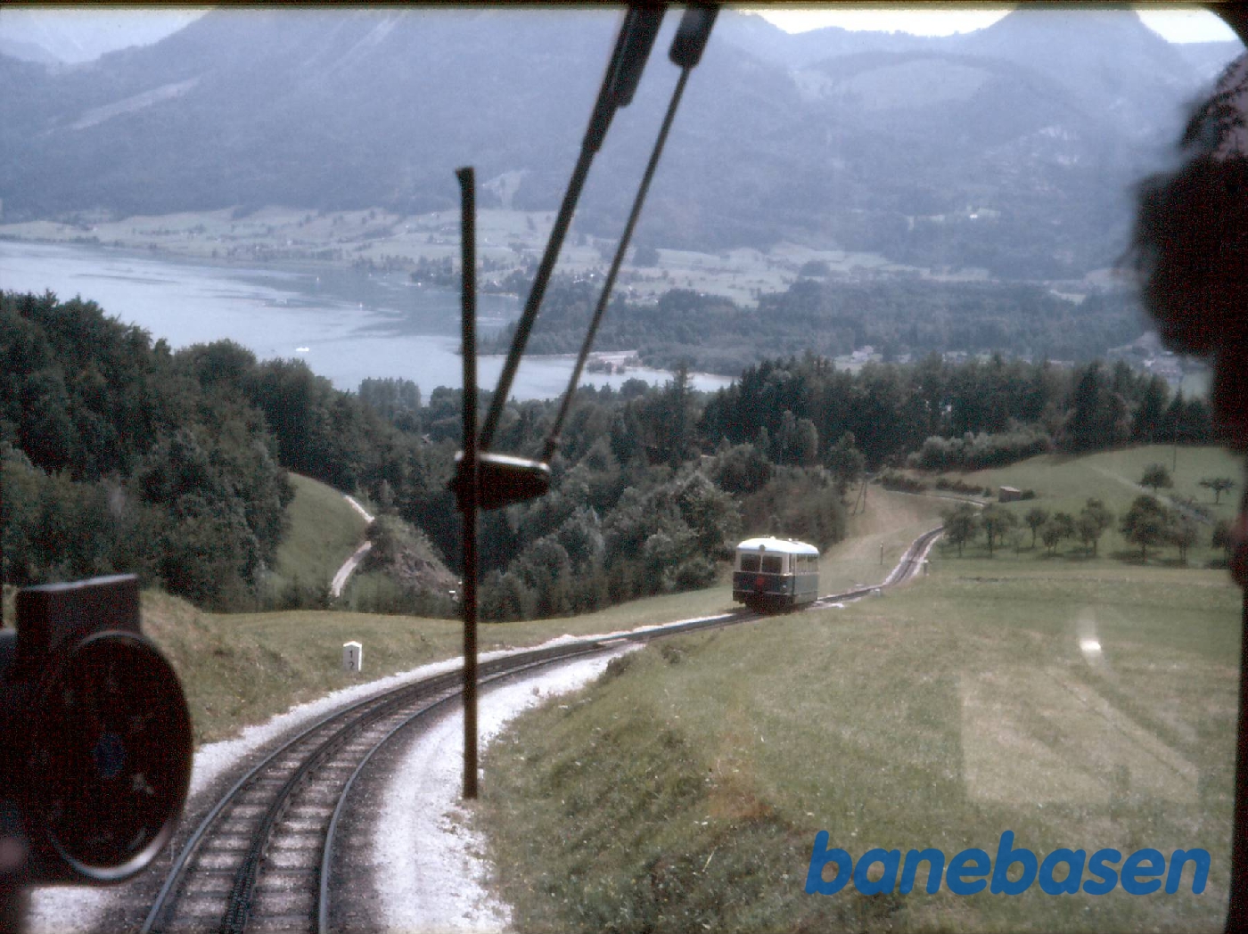 Østrig - Smalsporsbaner. Motortog på vej ned mod St. Wolfgang