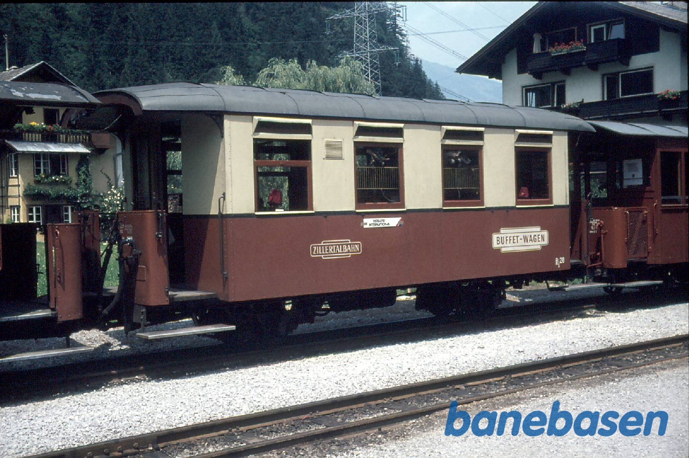 Østrig - Smalsporsbaner. Personvogn Bi 28 på Mayrhofen station