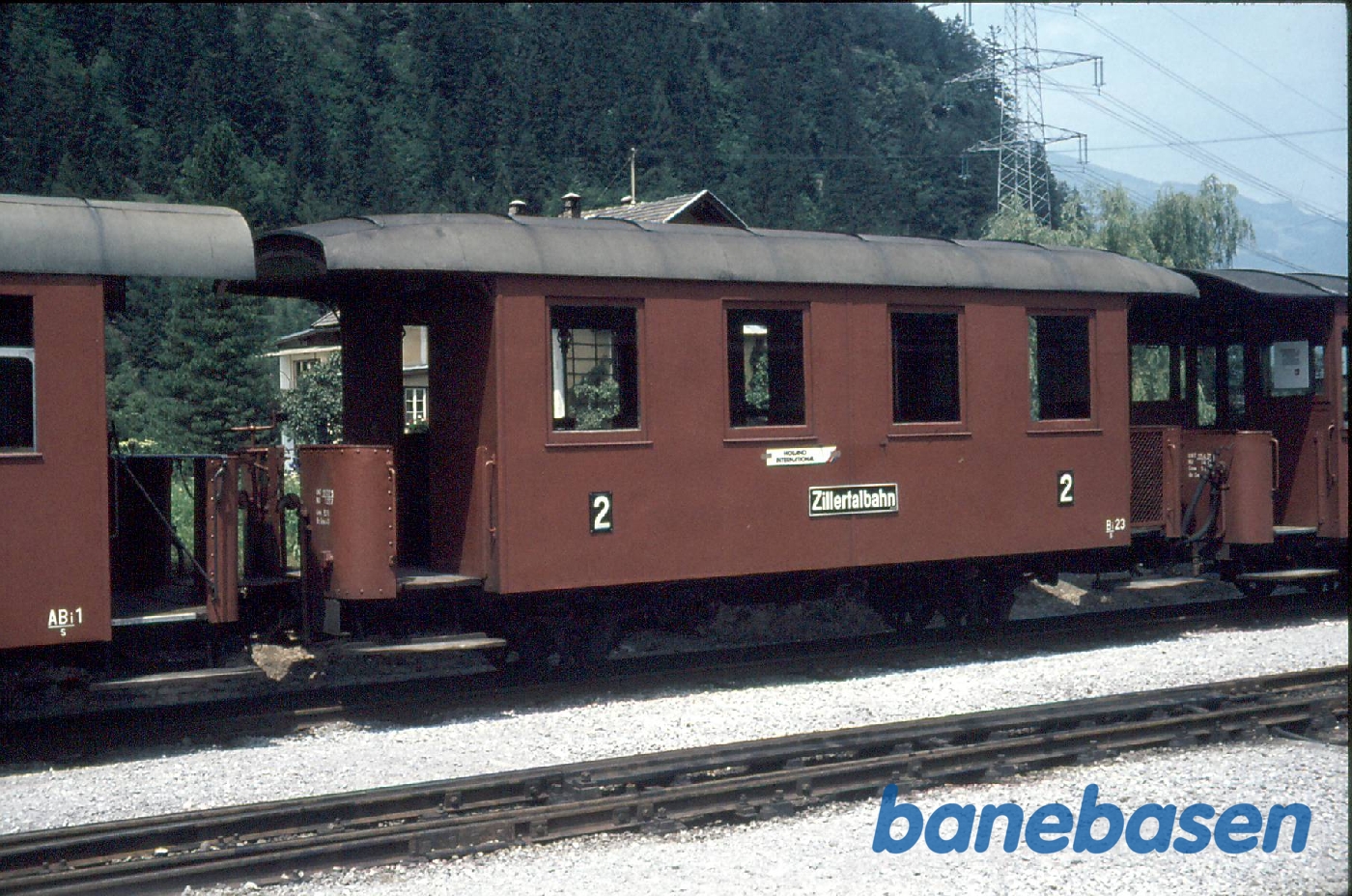 Østrig - Smalsporsbaner. Personvogn Bi 23 på Mayrhofen station