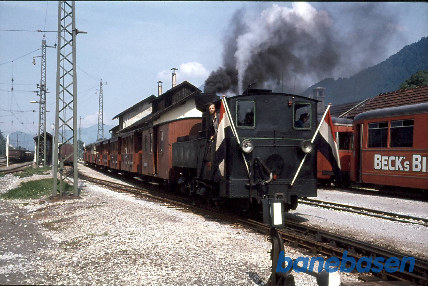 Østrig - Smalsporsbaner. Lok nr. 2 med udflugtstog ankommer til Jenbach