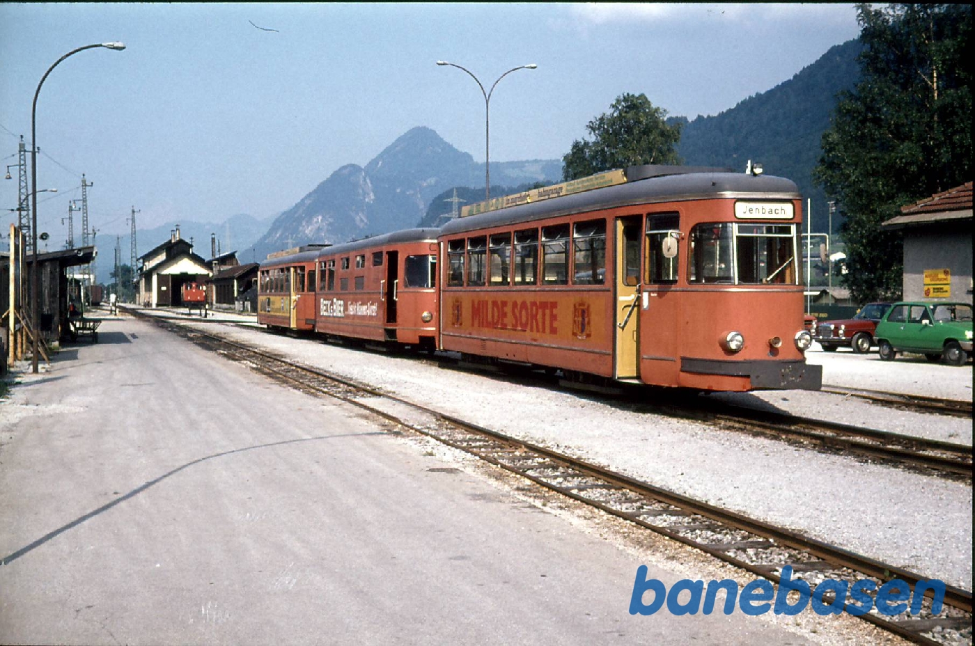 Østrig - Smalsporsbaner. Motortog VT 1 bestående af St1 + GW + St2 på Jenbach station