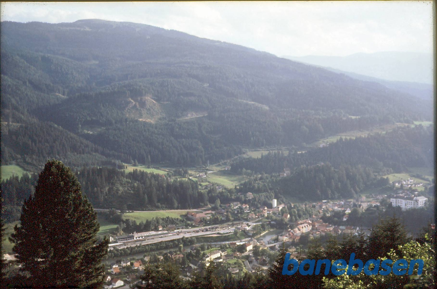 Østrig - Smalsporsbaner. Murau station set fra bjerget