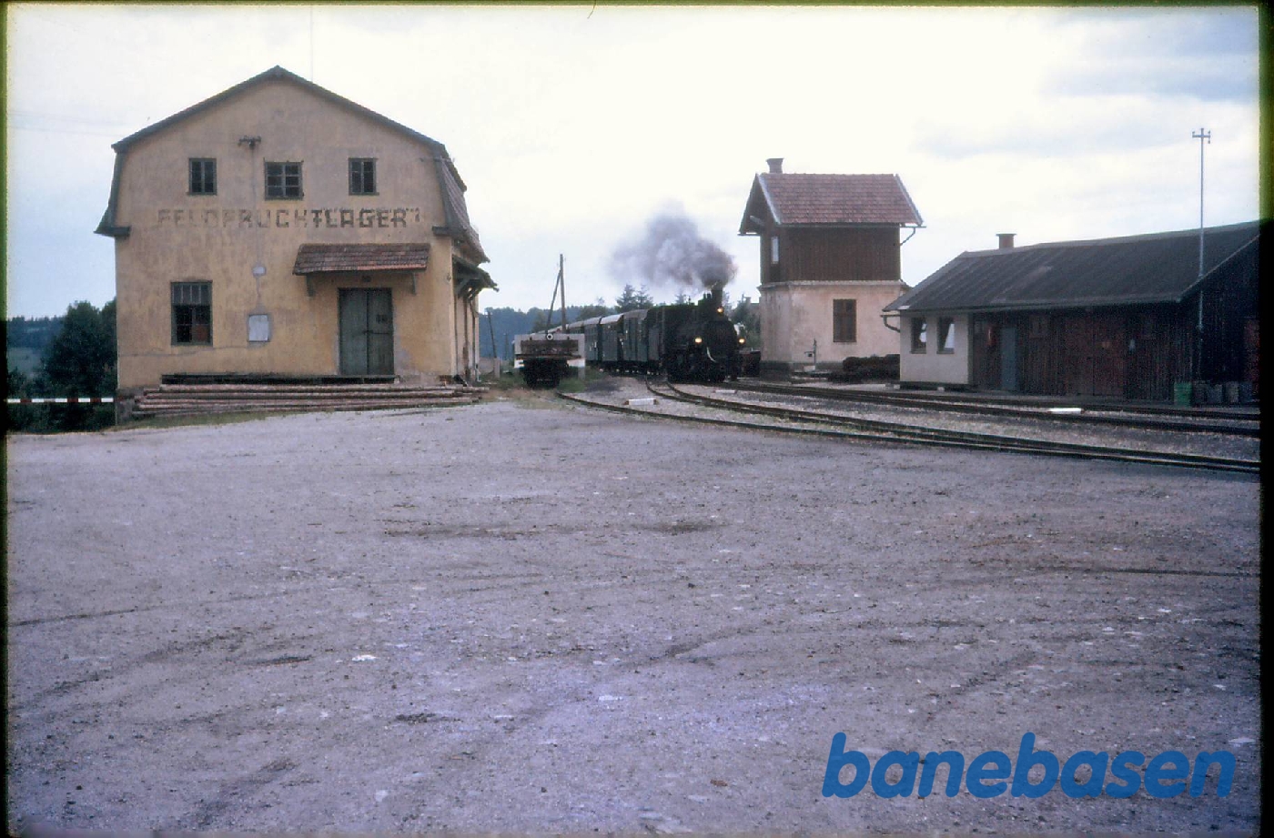 Østrig - Smalsporsbaner. Damptog under indkørsel på Weitra station