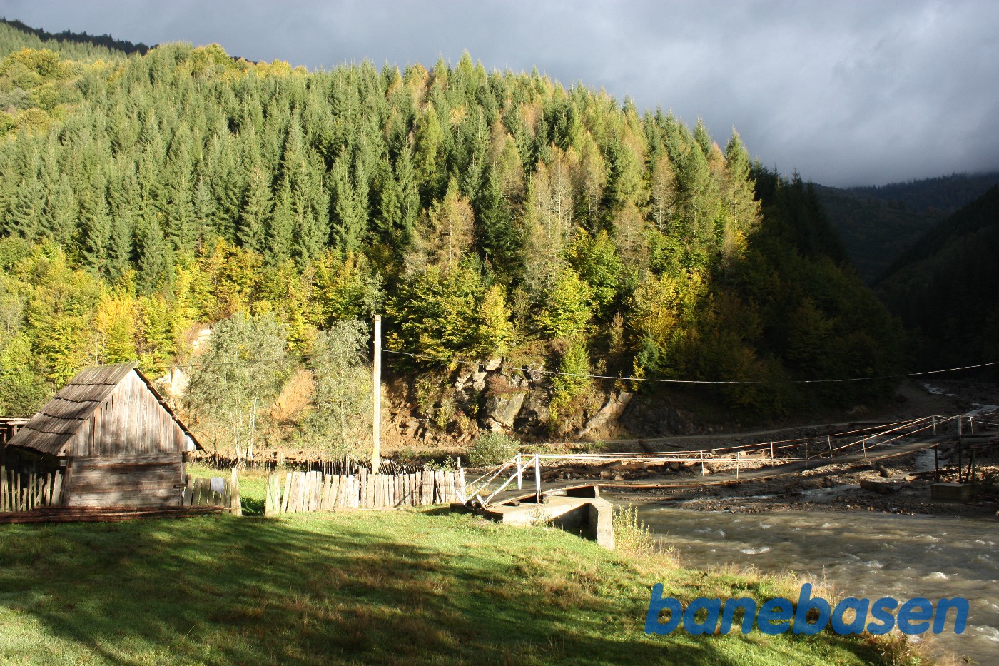 Billede fra turen op langs floden i skoven. Hængebro
