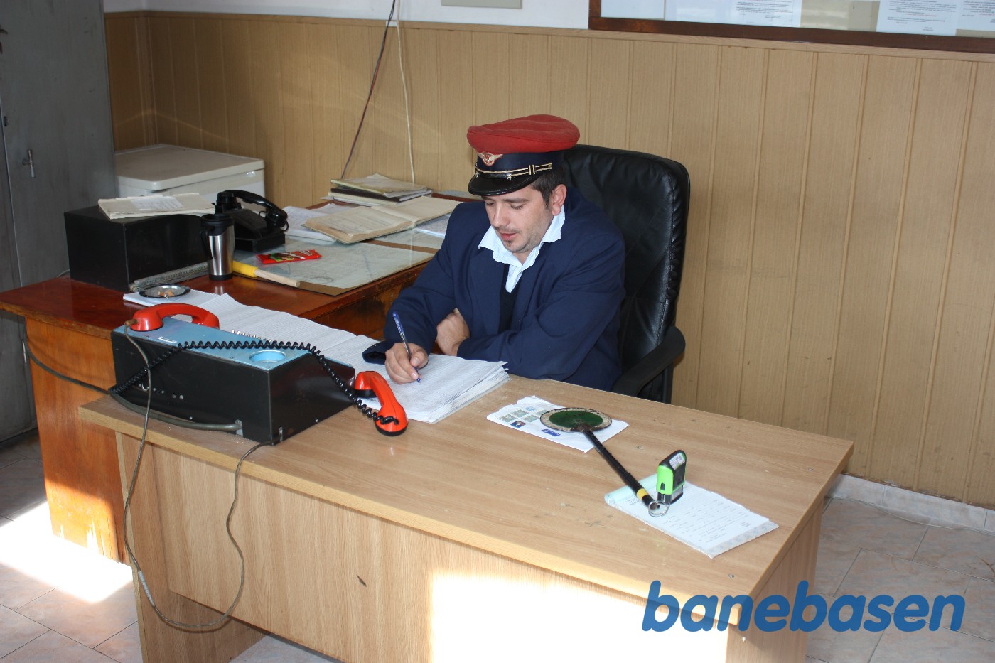 Motiv:Sinicolaul Mare. Stationsbestyreren ved sit skrivebord