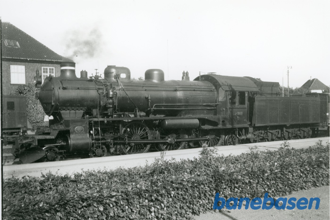Damplokomotiv DSB PR 908 med godstog på ??? Station