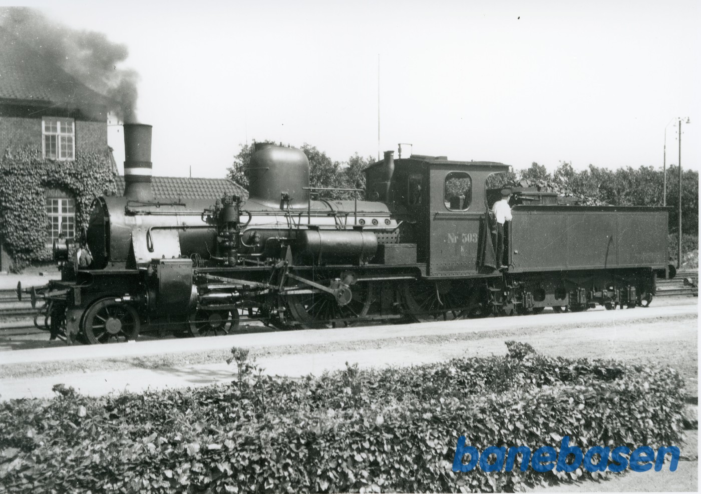 Motiv:Damplokomotiv K 503 holder på ? Station