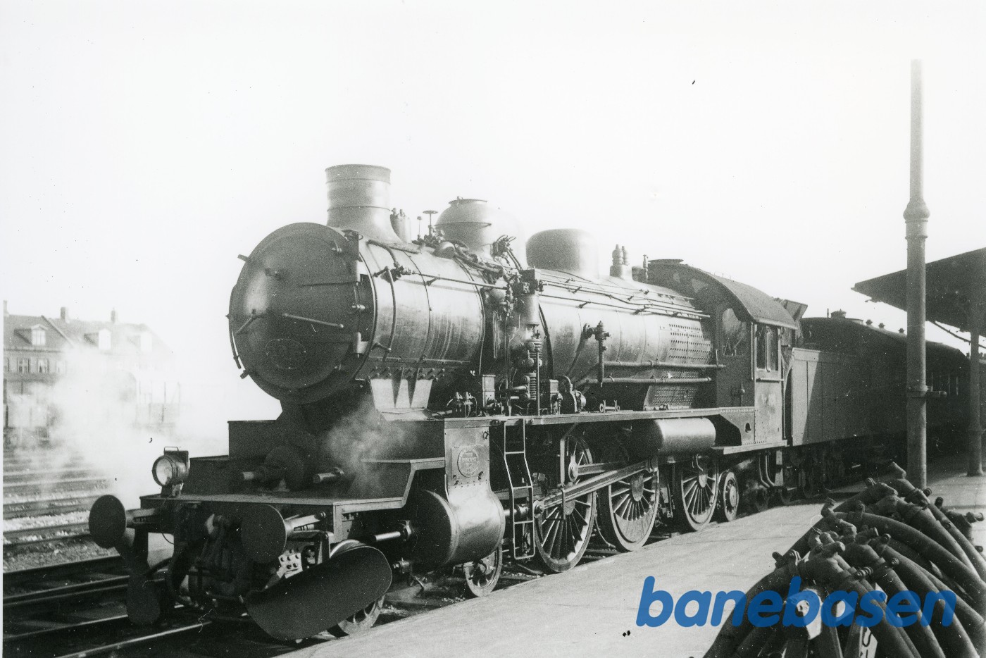 Motiv:Damplokomotiv DSB PR 926 på station med persontog