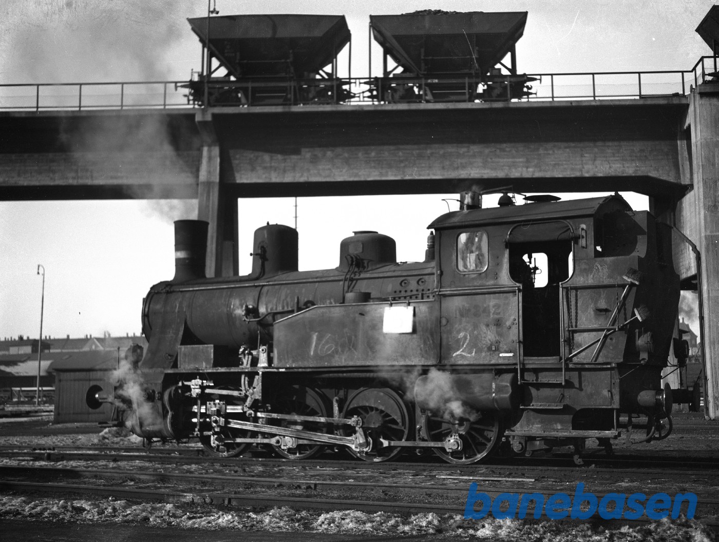 | Motiv: | Damplokomotiv DSB Q 342 ved kulbroen på København GB |