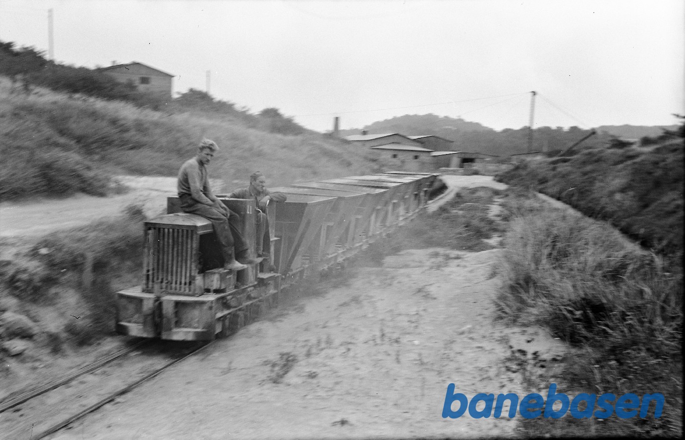 Motiv:smalsporet industribane, motorlok med tipvognstog (SvJ : Bornholm - Hammeren) ?