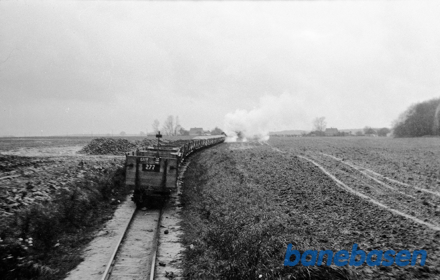 | Motiv: | Roetog med tomme vogne set bagfra |
