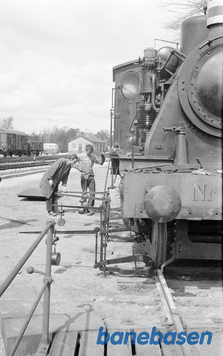 | Motiv: | Vejning af akseltryk / tilspænding af fjeder på damplokomotiv ØSJS 7 ved Rungsted Remise |