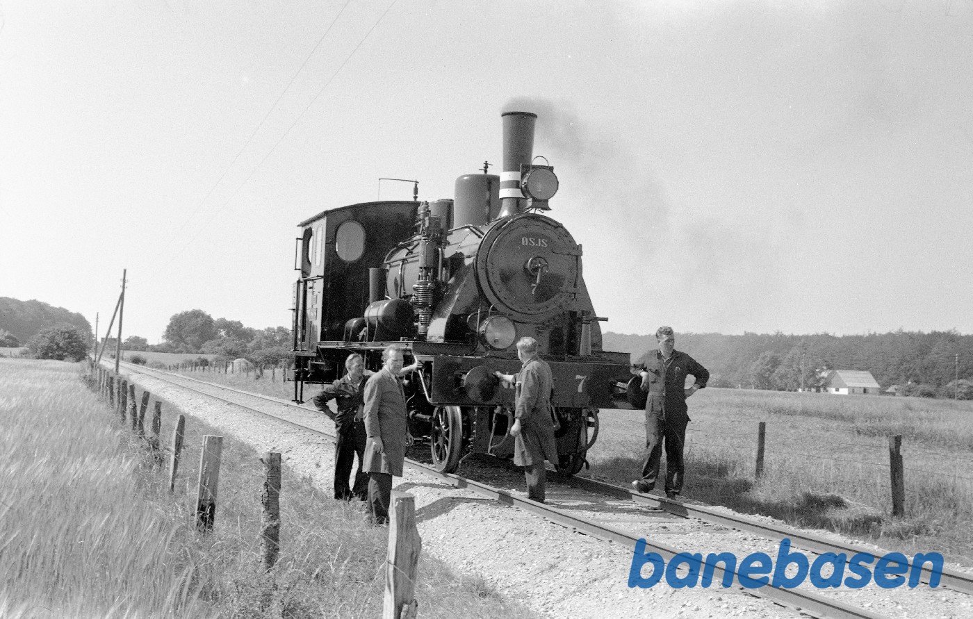 Motiv:Damplokomotiv nr. 7, ophold på fri strækning under prøvetur