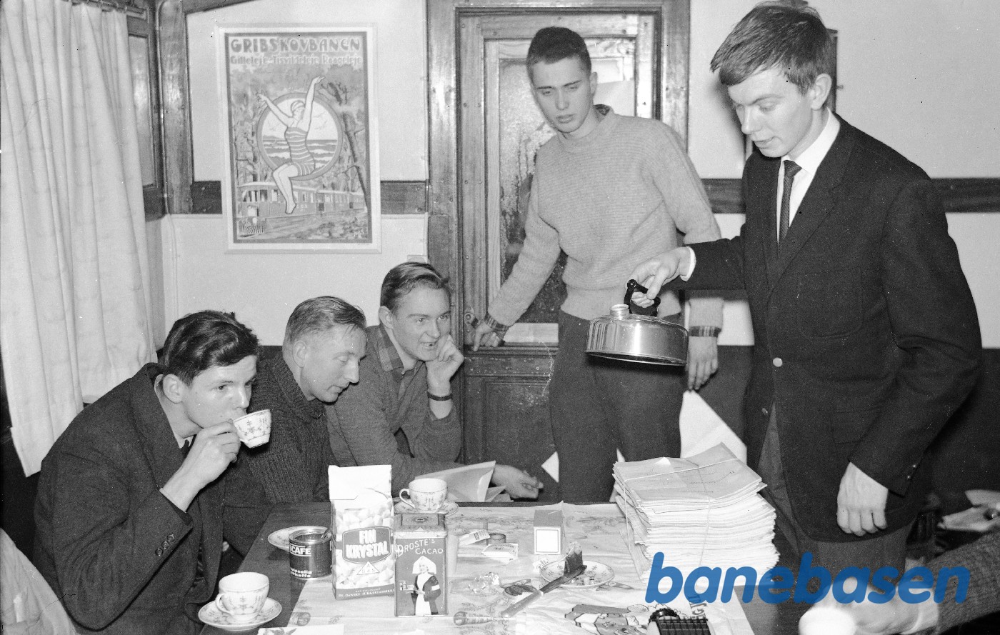 Motiv:Arbejdshold drikker kaffe i personvogn